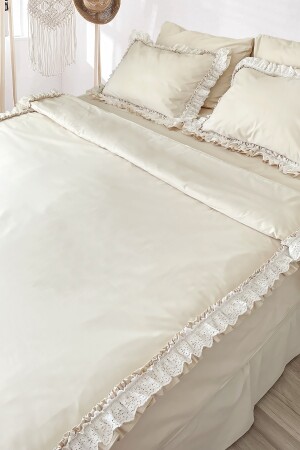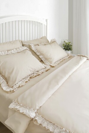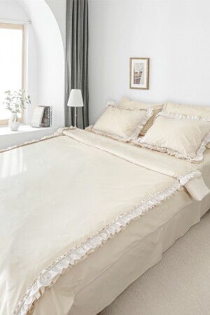 MNZ-Light Beige Ruffled Scalloped Cotton Vintage Retro Hotel Series مجموعة غطاء غطاء مزدوج RHN2078xx