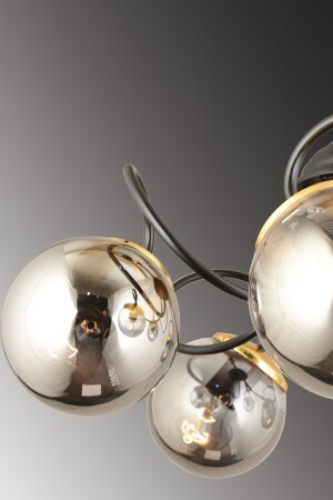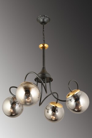 Pare Model Modern Spor Siyah 4'lu Glop Füme Camlı Avize