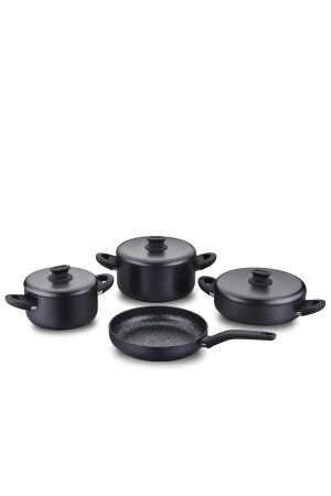 MNZ-Lina Plus 7 قطع حاويات الطهي من الجرانيت الأسود مجموعة 9080201A2887