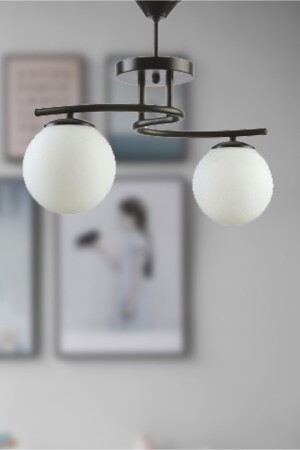 MNZ-Linda الملون الأسود الحديث الكرة المغلقة الزجاج الأبيض غرفة المعيشة - المطبخ - غرفة النوم 2 قطع الشنابل LNDA2Lİ
