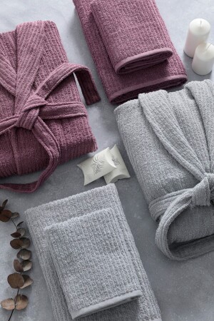 MNZ-Line 100% القطن فاخرة 8 قطع مجموعة الحمام العائلية - الرمادي - البوم