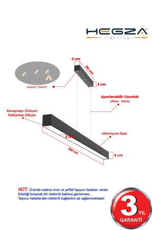 MNZ-Linear 120cm (قضية سوداء، ضوء أبيض) مصباح Pendant LED عصري مصباح LED، غرفة المعيشة، المطبخ، مصباح خطي خطي-120 سود