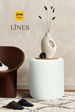 MNZ-Manual Made Off-White Tedy Fabric Cylinder Decorative Pouf Bench (من صنع يدك خارج الأبيض المملء) ، والتي تتميز بالأنسجة