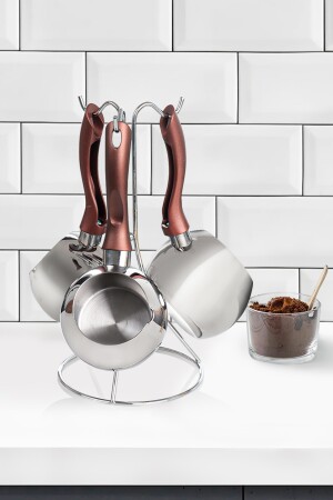 29015 Modern Askı Standlı 4 Parça Çelik Cezve Seti
