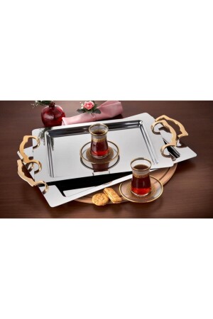 Paslanmaz Çelik Kare 6lı Aksesuarsız Çay Kahve Sunum Tepsisi