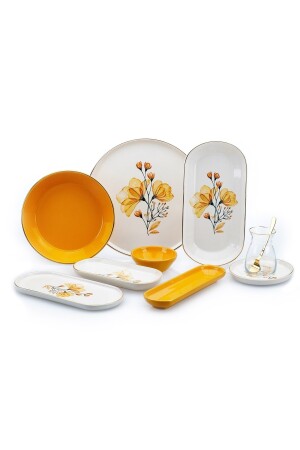 MNZ-Glore Lizy Mustard 41 قطعة طعام الإفطار المزروع بالسيرافي الذهبية المزروعة لـ 6 أشخاص المزروعة المحتوى الذهبية ل