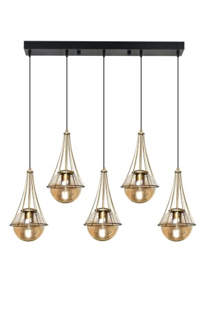 MNZ-Lopo 5 Piece - فخمة الملكة مصباح معلق شاندليير - القديمة السوداء الجسم عسل الزجاج LP5