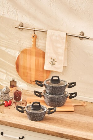 مادة مجموعة من أدوات الطبخ من الـ MNZ- Emsan Luna 6 Piece Midi: مضاد للنيران، مجموعة غلافات الجرانيت غير الملصقة محتوياتها 14 سم ص