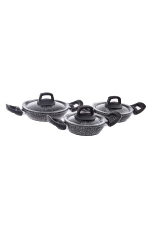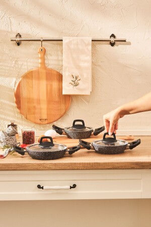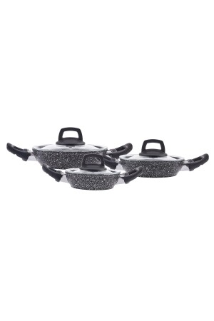MNZ-ESSENSO 6-piece Granite PAN SET مع زجاج زجاجي زجاجي أسود 18-20-22 CM