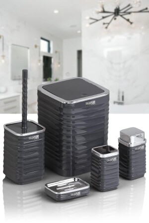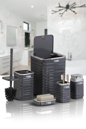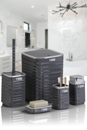 5 Parça Lucas Akrilik Bambu Banyo Seti Gri