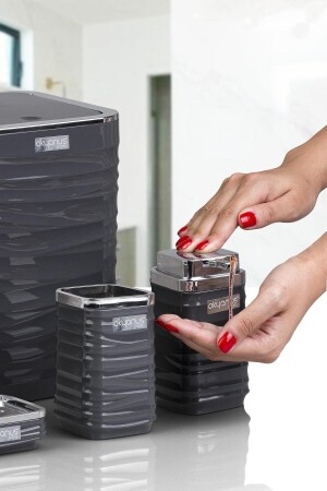 5 Parça Lenox Akrilik Bambu Banyo Seti Gri