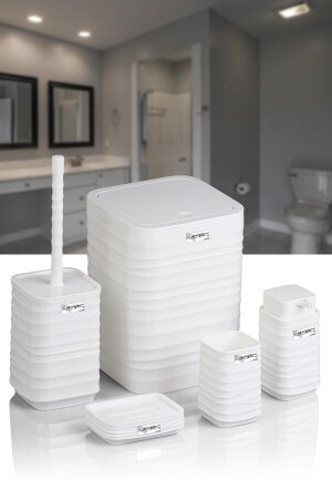 MNZ-Luna White Square 5 قطع مجموعة حمام