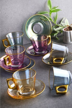 MNZ-Lux - نيسكاف زجاجي وكوب الشاي مجموعة 6 ألوان - 12 قطعة