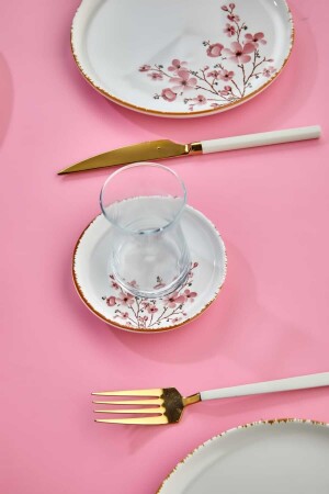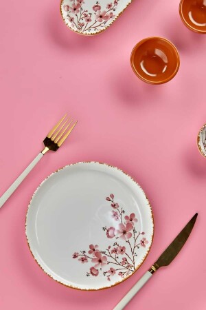 MNZ-Lux Ceramic Handmade 21 Piece Sakura Flower Breakfast Set لـ 6 أشخاص، مجموعة الإفطار