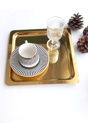 MNZ-Lux Steel Gold Titanium Coffee Presentation Tray 21x21 سم تخطيط خطوة