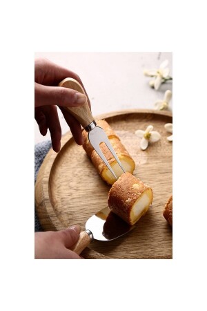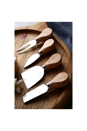 MNZ-Luxury Bamboo Handle Steel Cheese Knife Set of 4 - تشيز عرض مجموعة من 4