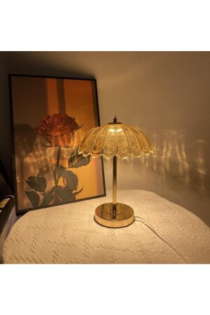 Dekor Yapay Eva Çiçeği Kablosuz Masa Lambası Beyaz Gold