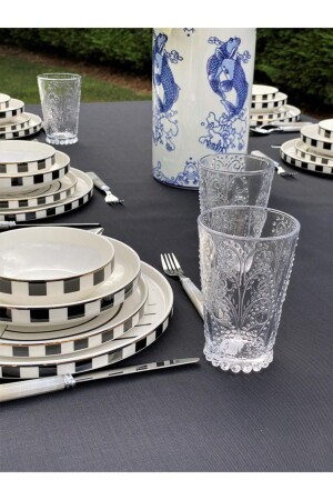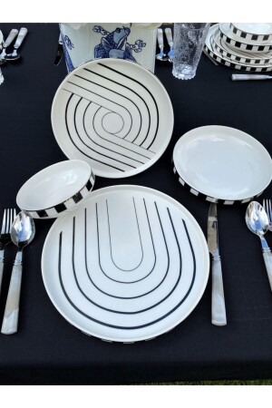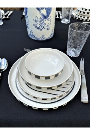 مجموعة عشاء العظام الجديدة من MNZ تتكون من 6 أكواب و 6 لوحات عشاء و 6 لوحات حلوى و 6 لوحات خدمة.