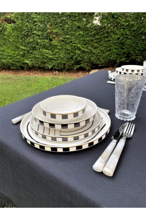 (MNZ-Matte) عشاء أسود / فطور مجموعة 30 قطعة لـ 6 أشخاص dmtaks202330