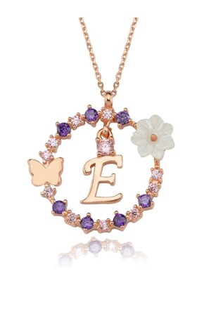 MNZ-Magnolia زهرة الأحلام حروف نيل E وردة اللون الفضة حروف عنق KL03381-MLV