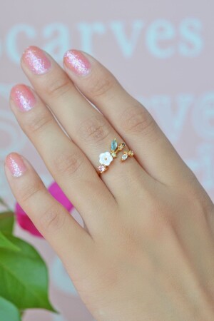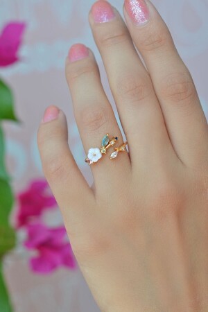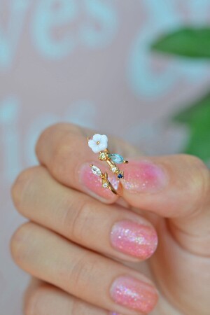 MNZ-Magnolia زهرة زرقاء بيضاء لون قابلة للتعديل حلقة GMNQZ145