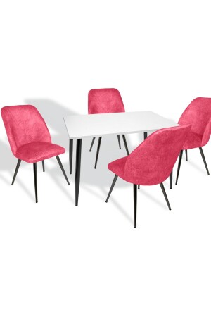 مقعد طاولة MNZ-Eylül Set طاولة مستديرة 4 مقاعد Boucle - Teddy Fabric Kitchen Table طاولة الطعام