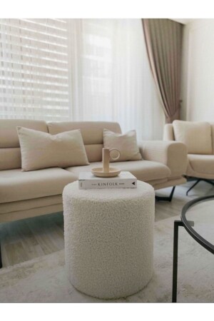 MNZ-Manual Made Off-White Tedy Fabric Cylinder Decorative Pouf Bench (من صنع يدك خارج الأبيض المملء) ، والتي تتميز بالأنسجة