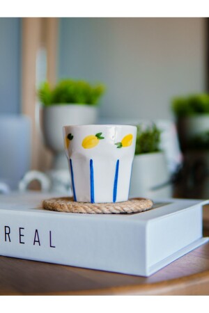 MNZ-مصمم ويعرض للبيع كوب إسبريسو مزدوج من أشكال الليمون السيراميكي المصنوعة يدويا، بحجم متوسط 150 مل، من شركة تير