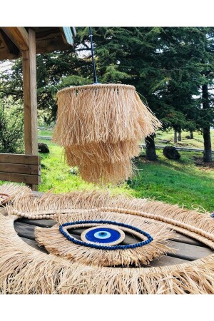 MNZ- هو مصنوع يدوياً بالكامل من رافيا من ألياف الموز الطبيعية بنسبة 100٪. لديه 3 مراحل. قطر الأعلى 25-20-15 سم. طوله بين 30/35