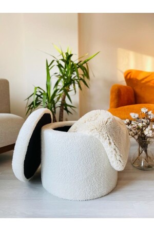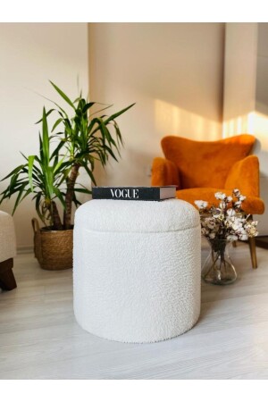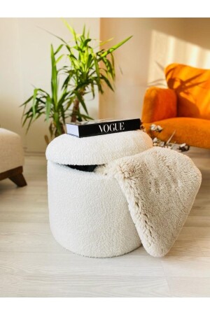 MNZ-Manualmade X Large White Tedy Fabric Cylinder ديكوراتي بوف بنك مع تخزين