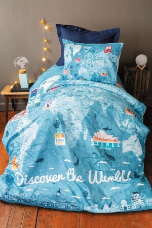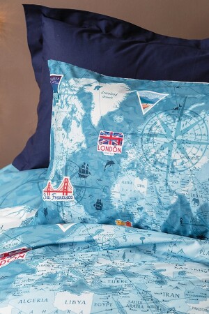 Rally Yarış Arabalı Desenli Mavi Çarşaflı 2 Yastık Kılıflı -Ranforce Tek Kişilik Nevresim Takımı