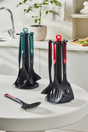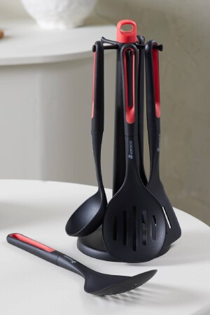 MNZ-كاراكا ماركو الأحمر 6 قطع مجموعة الخدمات مع مجموعة المواقف 1 مقعد 33x9 سم 1 قطعة ملعقة المعكرونة 33.5x6 سم 1 قطعة مل