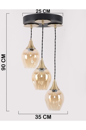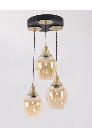 MNZ-Marlo 3-piece Black Antique Honey Glass Pendant Lamp شمعة 2505202211