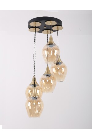 MNZ-Marlo 5-piece Black Antique Honey Glass Pendant Lamp شمعة 2505202211