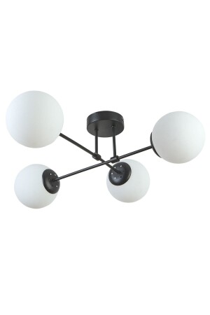 Pare Model Modern Spor Siyah 4'lu Glop Füme Camlı Avize