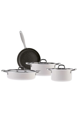 MNZ-Emsan Master Class 7 Piece Saucepan Set White 18 cm 1-8 LT صلصة عميقة 22 cm 3-2 LT صلصة عميقة 26 cm 3-2 LT بريز بوت 26 cm