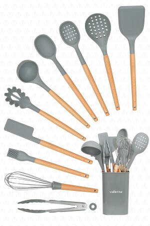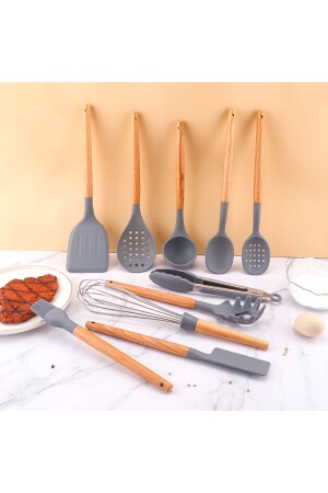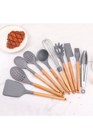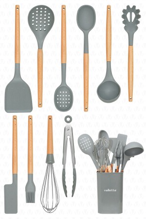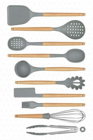 MNZ-Matis سليكون مقاوم للحرارة مقاوم للنيران غير عصا 11 قطعة الخدمة مع منصة الرمادي