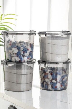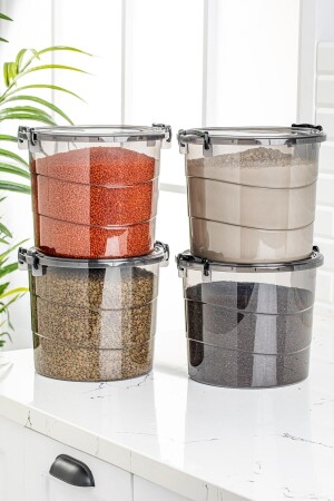 MNZ-Mega Size 4 Piece Round Flour and Legumes حاوية 7 ليترات - حاوية صندوق تخزين للمياه مع معقبلة الأنتراكيت