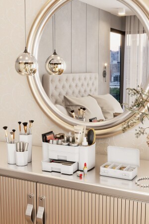 MNZ-Mercan مربع الماكياج متعددة الأغراض و مجوهرات منظمة مجموعة منظمة مجموعة 3 قطع أبيض