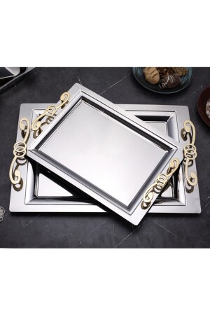 Lüx Kare Kelebek Aksesuarlı Paslanmaz Çelik 6’lı Gümüş Kahve, Çay, Dekoratif Sunum Servis Tepsisi MZKBK667