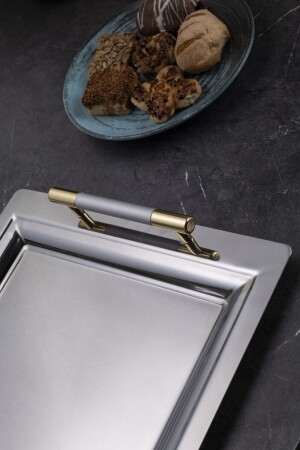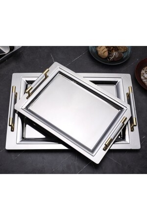 Lüx Kare Kelebek Aksesuarlı Paslanmaz Çelik 6’lı Gümüş Kahve, Çay, Dekoratif Sunum Servis Tepsisi MZKBK667