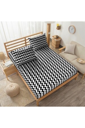 MNZ-Mer-tim مزدوجة الجومبو حجم 200x200 مجموعة ورقة معتادة - أسود وأبيض زيغزاك نمط MERTM000610