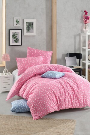 MNZ-Mer-tim مضاعفة الوردية الوردية النجمة نمط القطن Ranforce غطاء غطاء مجموعة - 200 × 220 MERTM000342