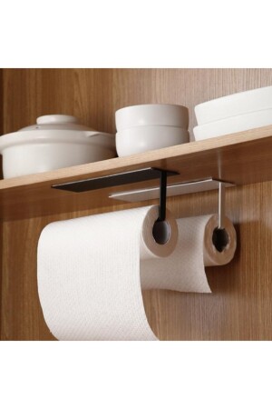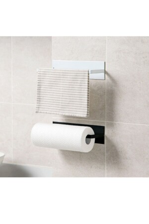 MNZ-Metal Matte Black and White Paper Roll Towel Holder - حاملة الحفاضات