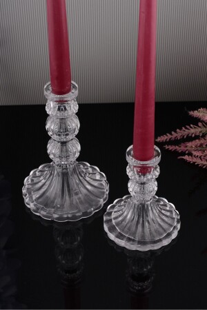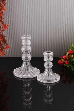 MNZ-MİA شمع النور الزجاجي 2 قطعين مجموعة شمع النور المزخرفة الوسطى الصغيرة