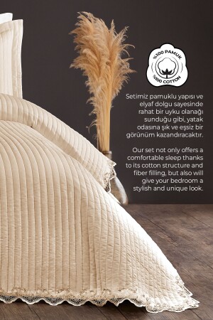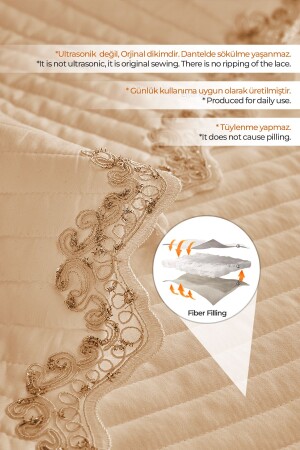 MNZ-Mihrimah Lace King Double Size 100% قطن غطاء السرير (Pique) مجموعة غسيل القفص / البيج