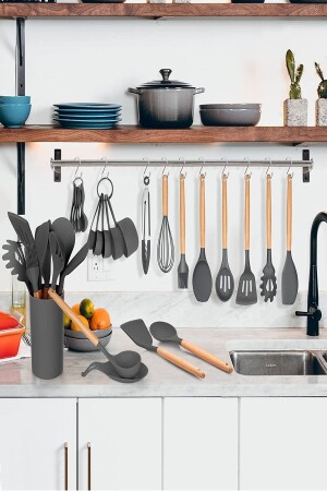 MNZ-Mikla مقاومة للحرارة لا تدخن 33 قطعة سليكون Spatula المطبخ مجموعة الرمادي