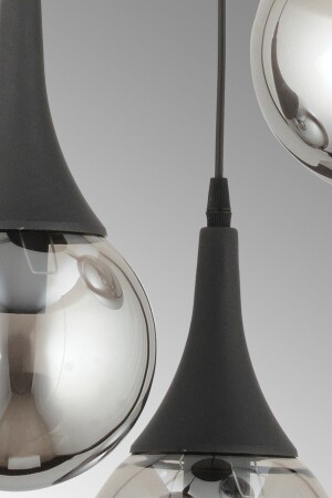 Pare Model Modern Spor Siyah 4'lu Glop Füme Camlı Avize