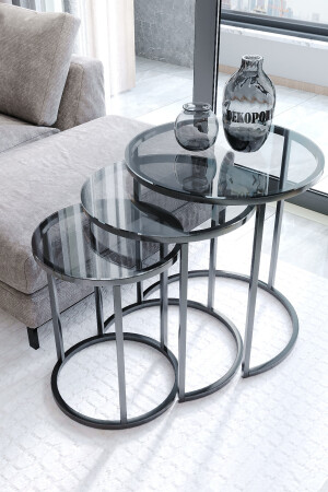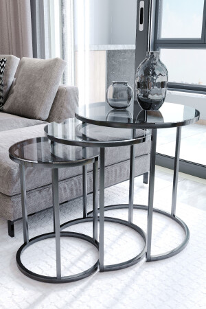 MNZ-Nesting Coffee Table و طاولة القهوة الكهف المُعدّل الفضي Efes Tel FMA3103