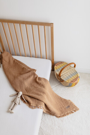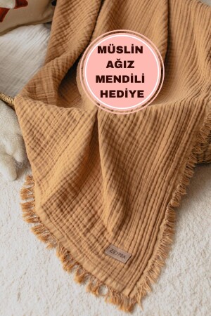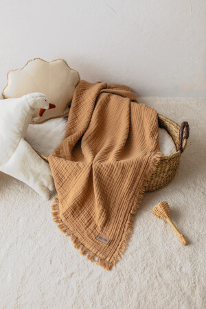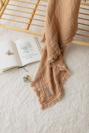 [ Istediğiniz Ismi Yazıyoruz ] Sütlü Kahve 4 Katlı Müslin Bebek Ve Çocuk Battaniyesi 110x110cm
